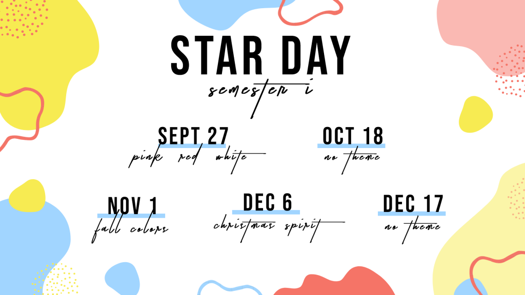 StuCo will be hosting several Star Days this semester, on which students can come out of uniform as long as they dress according to the theme of the day and follow ECA dress code. To participate, students and staff can purchase a semester pass for $5.000, or pay $2.000 for each individual Star Day the day of the event. The dates and themes are as follows: