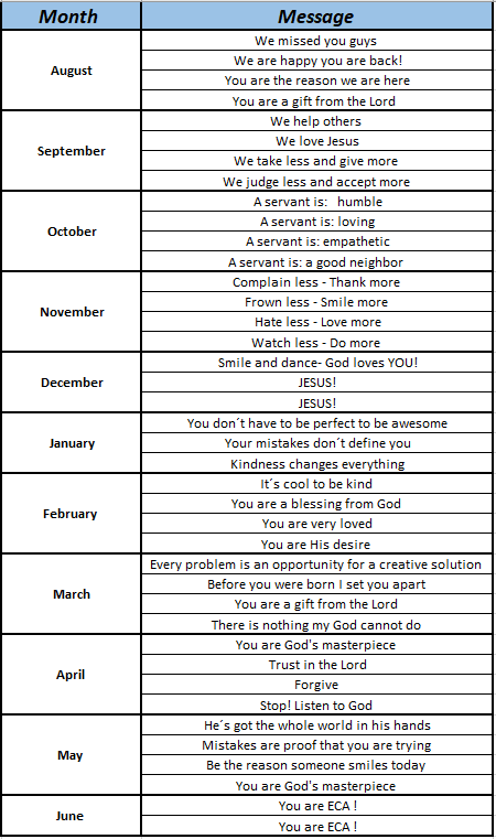 These are some messages we will be working on a weekly basis in ECA, we invite you to talk about them at home and to plant seeds of kindness in our children.